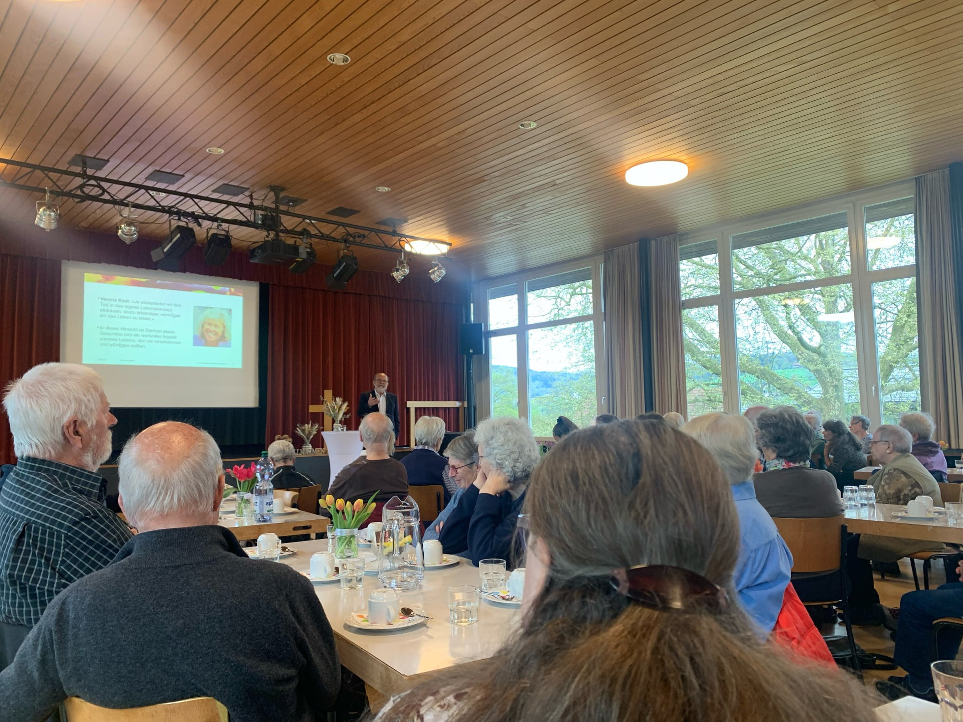 Besonders beeindruckend waren die Zahlen, die er uns, rund 80 anwesenden Personen, nannte. Er teilte uns Teilnehmer anschaulich in Blöcke ein: Zwei Drittel der Anwesenden müssen oder werden sich aktiv für das Sterben entscheiden (etwa durch den Verzicht auf weitere Therapien), während nur ein Drittel durch plötzliche Ereignisse wie Unfälle, Schlaganfälle oder Herzinfarkte aus dem Leben scheidet. Diese grosse Anzahl derer, die selbst entscheiden müssen, hat mich tief beeindruckt. Es lohnt sich also, sich frühzeitig mit dem Sterben auseinanderzusetzen, damit es fest in unser Leben eingebettet ist.